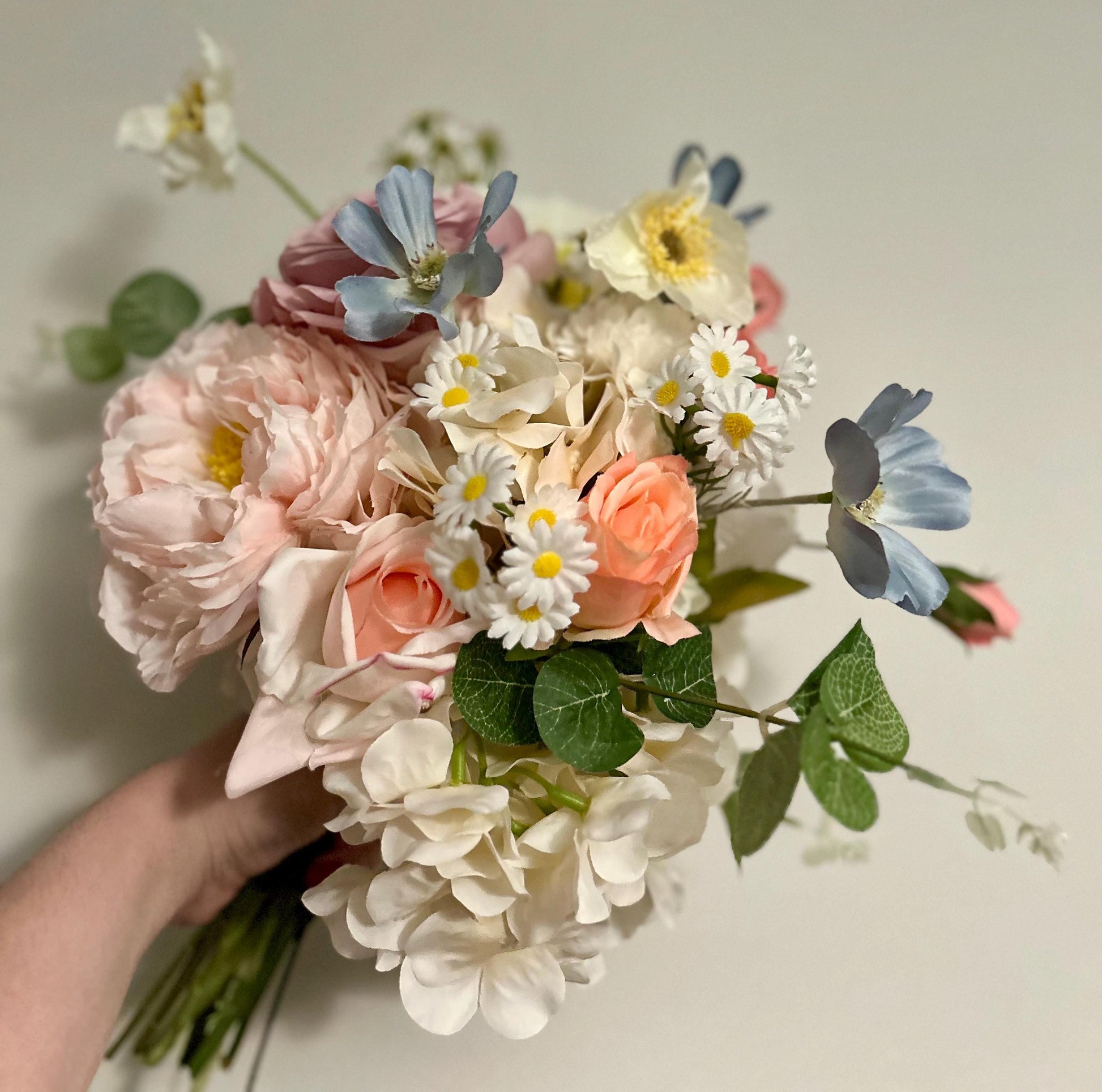 Bespoke handcrafted Soft Blush & Blue Wildflower Artificial Bridal Bouquet